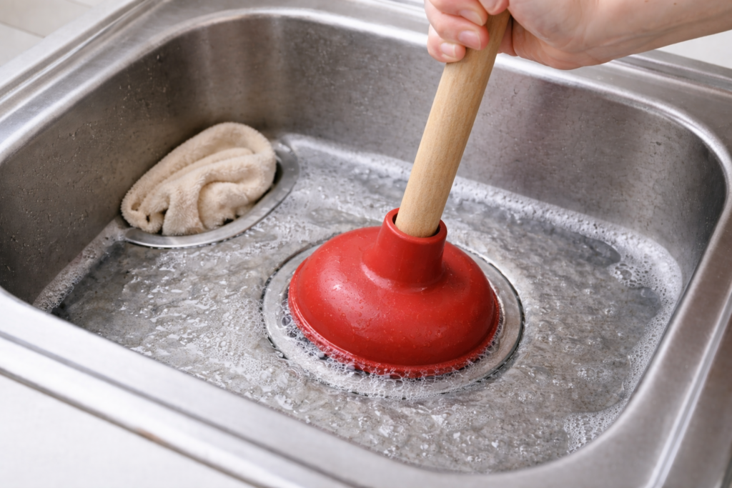 Plunging is simple but powerful. In many cases, it clears moderate blockages within minutes. If the sink remains fully clogged after several attempts, the obstruction may be located further down the plumbing system and require deeper cleaning methods.