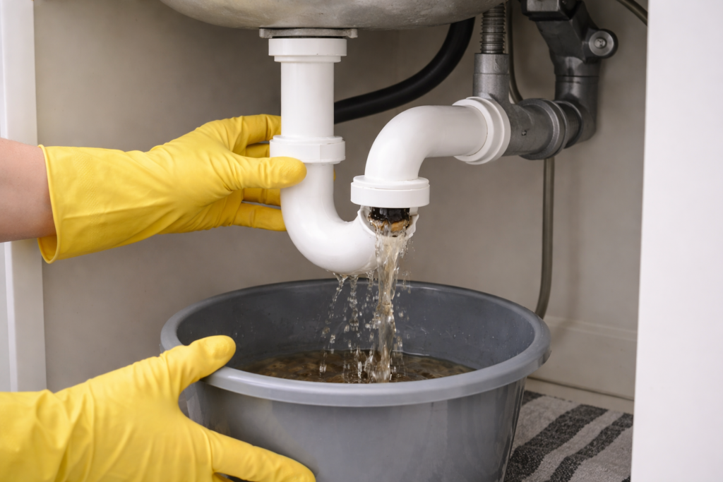 Cleaning the P-trap is one of the most reliable DIY solutions for deep kitchen sink clogs. With basic tools and careful handling, many homeowners can restore proper drainage in less than an hour.